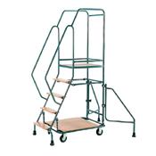 TABOURETS ESCABEAUX. TABOURETS. KIK STEP. En acier robuste. Possede deux plateformes antiderapantes. Roulettes a immobilisation. Cet escabeau sur roues est disponible en 9 modeles: de 5 a 14 marches. Marchepied en tole d.acier laquee avec roues sur ressort. Stable et sur, le marchepied peut etre deplace simplement en le poussant du pied. Lors de charges.